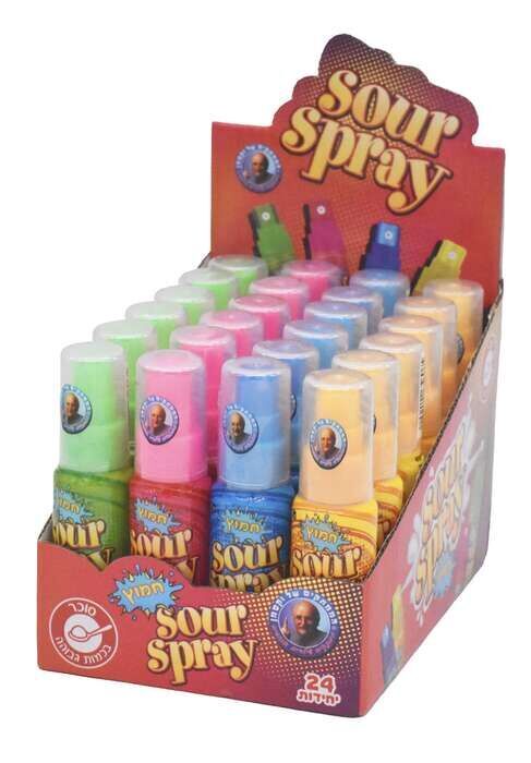ספריי חמוץ בטעמים 24 יחידות בקופסא, מחיר ליחידה כ- 2.5 ש"ח.