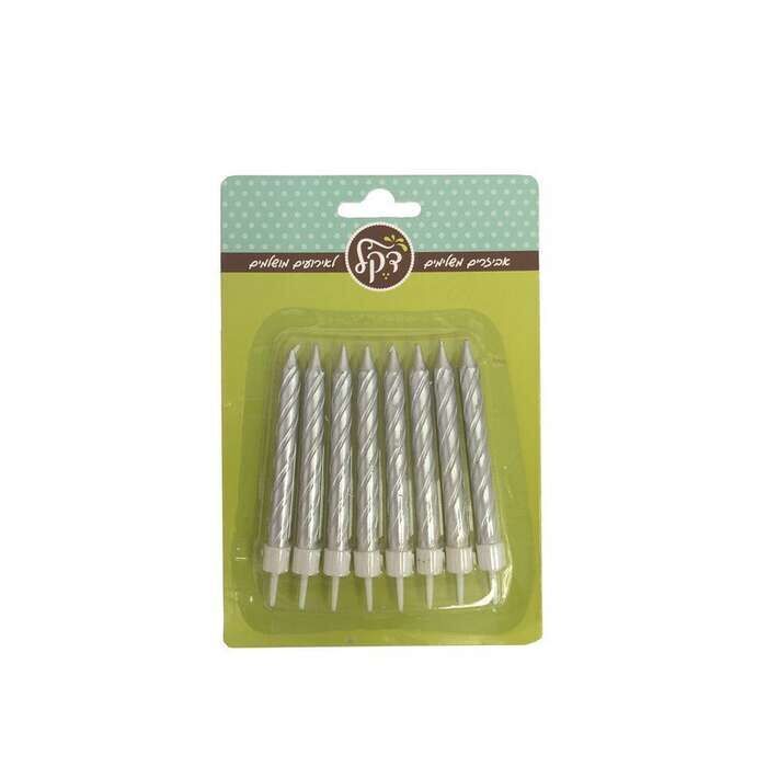 חבילת 8 נרות לעוגה - כסף גובה 8 ס"מ