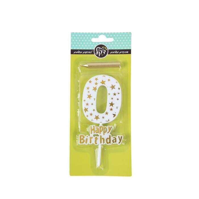 נר יום הולדת מספר 0 - זהב בסיס פלסטיק גובה 13.50 ס"מ