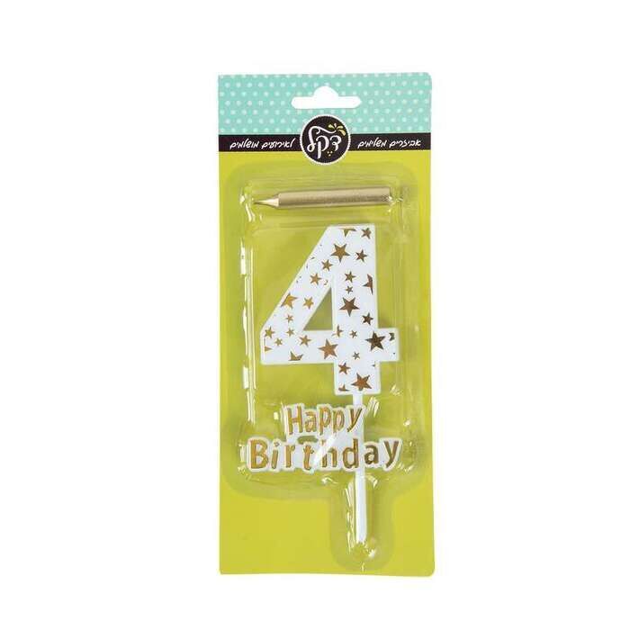 נר יום הולדת מספר 4 - זהב בסיס פלסטיק גובה 13.50 ס"מ
