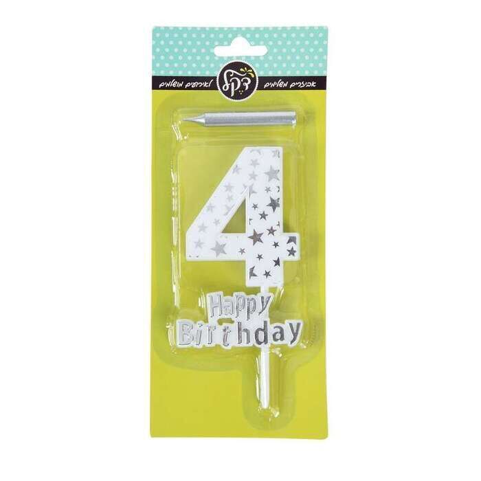 נר יום הולדת מספר 4 - כסף בסיס פלסטיק גובה 13.50 ס"מ