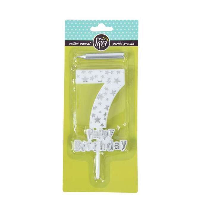 נר יום הולדת מספר 7- כסף בסיס פלסטיק גובה 13.50 ס"מ