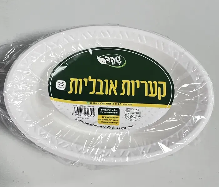 קעריות אובליות איכותיות בצבע לבן מותאמות לשימוש במיקרוגל. 25 יחידות בחבילה. מחיר לחבילה 2.4 ש"ח. 48 חבילות בארגז.