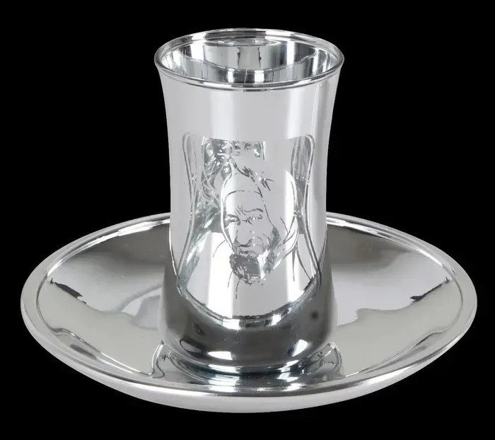 כוס מעוצבת מזכוכית בצבע כסף לקידוש או הבדלה