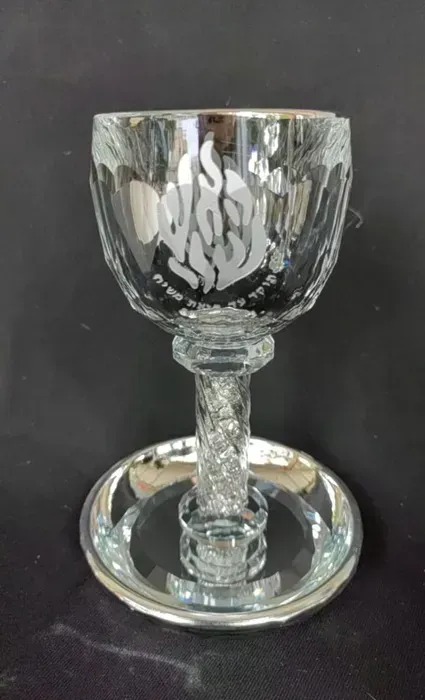 גביע קריסטל מהודר לקידוש בצבע זהב עם האש שלי חרוטה. גובה 19 ס"מ