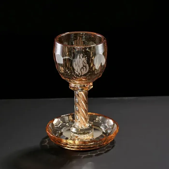גביע קריסטל מהודר לקידוש בצבע זהב האש שלי חרוטה. גובה 19 ס"מ