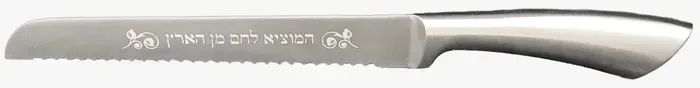 סכין לחלה מעוצבת בכיתוב המוציא לחם מן הארץ פלדלת אל-חלד חיתוך לייזר
