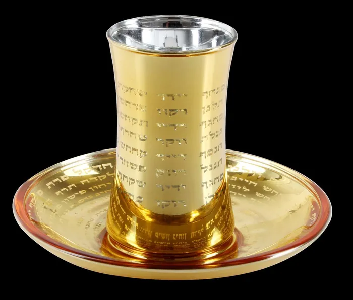 כוס מעוצבת מזכוכית בצבע זהב לקידוש או הבדלה
