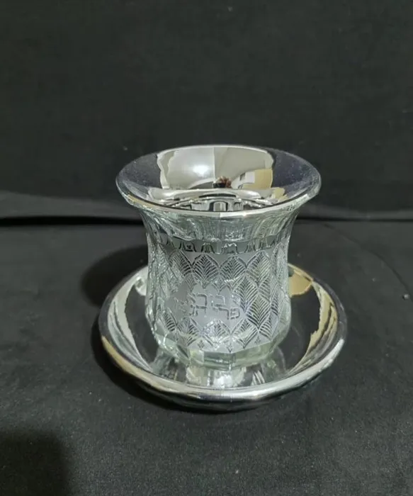 גביע קריסטל מהודר לקידוש בצבע כסף גובה 9 ס"מ
