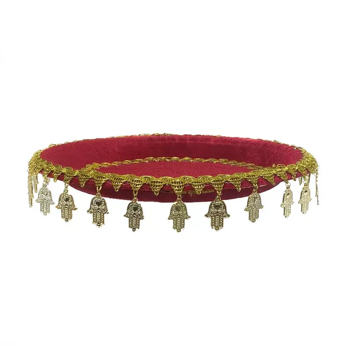 מגש חינה עגול קוטר 37 ס"מ - אדום עיטור חמסות.