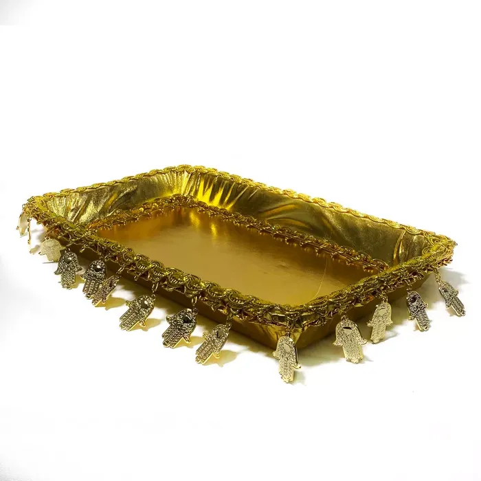 מגש חינה מצופה בד זהב עם עיטורי חמסות