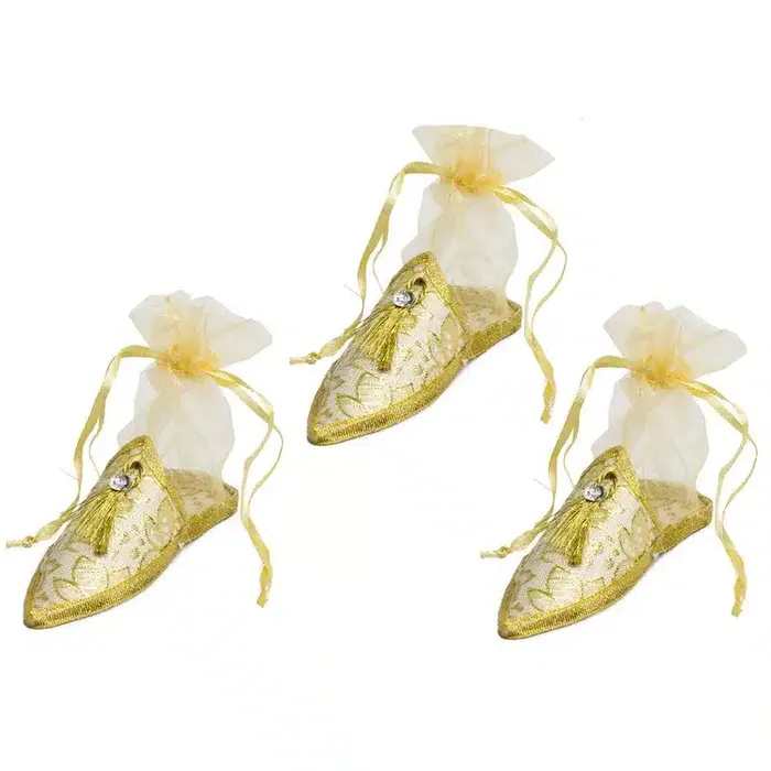 חבילת 3 נעלי מרוקו + שקית אורגנזה 12\4 ס"מ - זהב